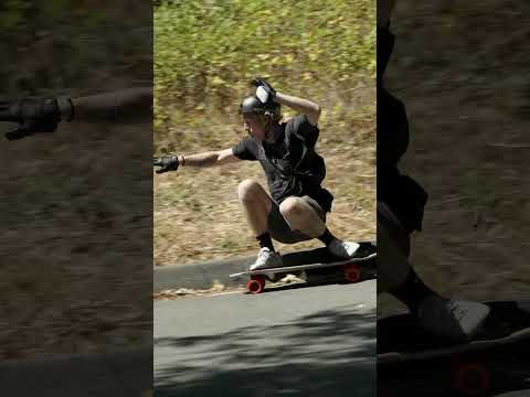 Team rider Marshal Parish kicks out a HUGE slide at “Rollin’ on the Res”- A premier Northern California downhill freeride event and Race. This road was technical and fast with riders reaching speeds up to 50mph while getting funneled into tight banked turns. Marshal is riding some Orangatang prototype race wheels 🤫 #orangatangwheels #orangat…